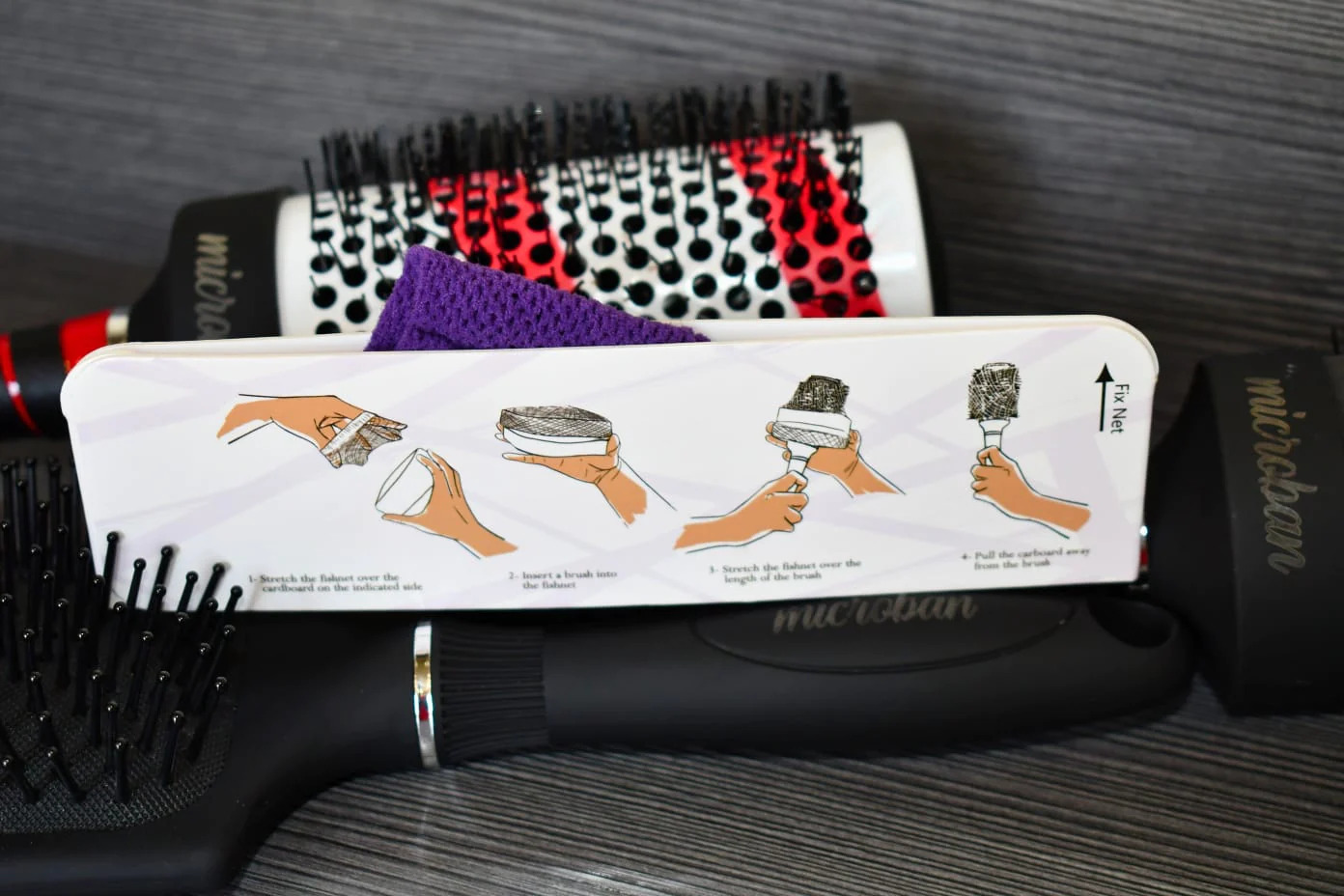 The Hygienic Hair Brush Cover is easy to use on hairbrushes of all kinds. You can read the instructions on the cardboard provided with The Hygienic Hairbrush Cover for applying it to your brush as well as removing it to keep your brush clean. It is safe and easy to use on all kinds of hair. There is no side effect to the scalp. The Hygienic Hairbrush Cover prolongs the life of your hairbrush. In minutes, you'll be able to brush your hair without causing scalp irritation and hair tangles. The Hygienic Hairbrush Cover offers multiple benefits not only for hygienic purposes but also for your overall hair quality. You can wash it and reuse it several times. One size fits all round and flat hairbrushes.